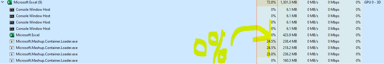 我有一个excel查询报告,有一个令人惊讶的错误。所有mashup引擎进程都没有处理器占用,但都存在。我现在唯一的解决办法就是结束这些过程。将创建新的mashup容器,并继续加载报表。为什么会发生这些死掉的过程?我不习惯在这里分享问题查询的代码。