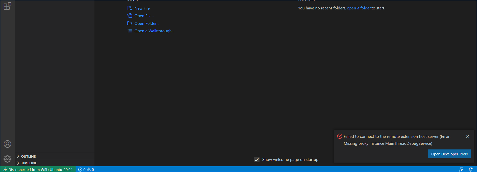 编辑1:尝试卸载和重新装入文件夹,也尝试打开具有高特权的cmd 'wsl代码。此外,我完全删除了wsl和vscode的所有扩展,但仍然得到相同的错误,我能够重现更多可读性错误,当打开一个项目时,它会提示使用。