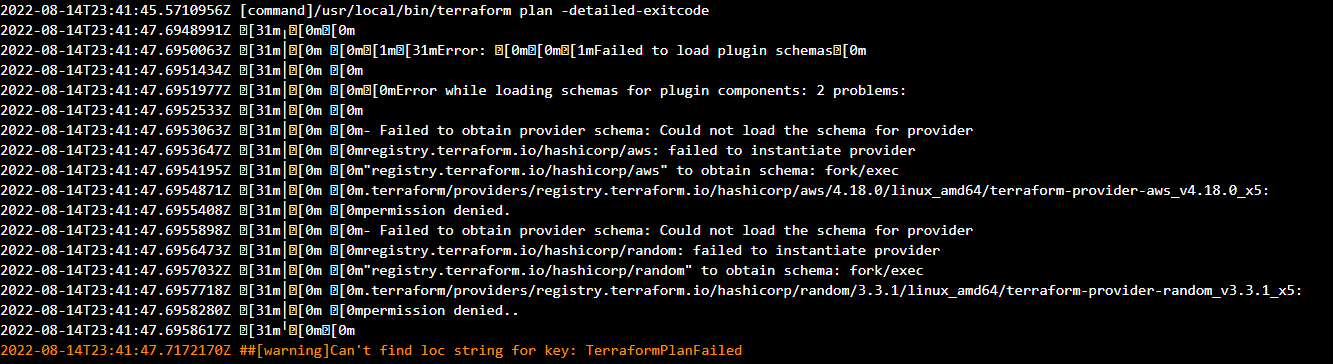 从屏幕截图看,它似乎试图从/usr/local/bin执行命令,而不是我在步骤中指定的命令。被这个弄糊涂了。下面是我的plan步骤的yaml: