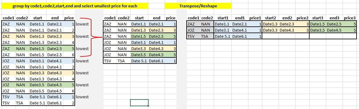 code1 code2 start.1 end.1 price.1 start.2 end.2 price.2 start.3 end.3