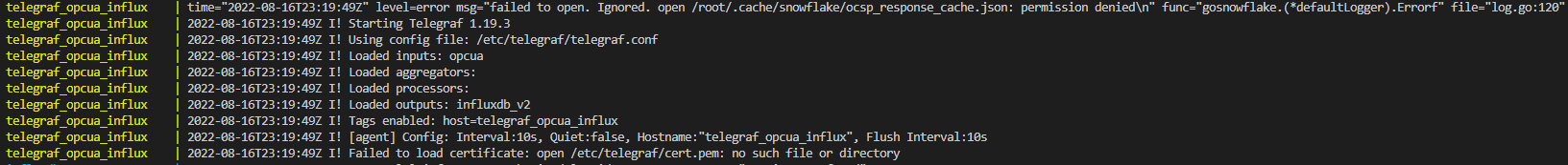 我的计划是使用telegraf从wago中读取opc数据作为输入,并将数据作为输出发送到我的进水数据库。其他插件也可以工作,比如mqtt plugin...so,我可以验证是否正确地设置了进水数据库。