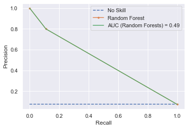 f1_rf, auc_rf = f1_score(testy, yhat), auc(recall_rf, precision_rf)