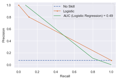 lr_f1, lr_auc = f1_score(testy, yhat), auc(lr_recall, lr_precision)
