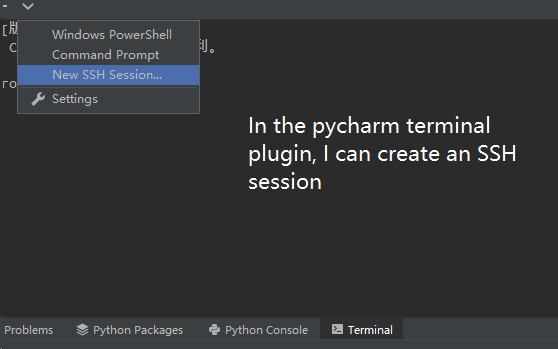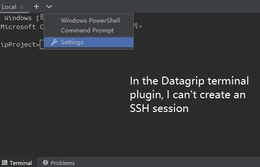 在py魅力终端插件中,我可以创建一个SSH会话来远程登录到服务器。在Datagrip中有类似的功能吗?根据官方的DataGrip文档,终端插件不是与Datagrip捆绑在一起的,所以我下载了这个插件并手动安装。但是只能创建本地会话(Windows和PowerShell ),那么如何创建远程会话呢?