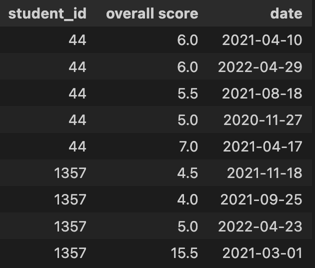 last_grade = group.loc[group.date == group.date.max()]['overall score']