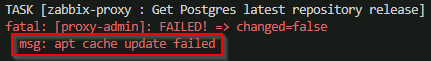 - "not 'zabbix-sql-scripts' in ansible_facts.packages"存储库键在另一个剧本中提供,并且执行时没有错误。