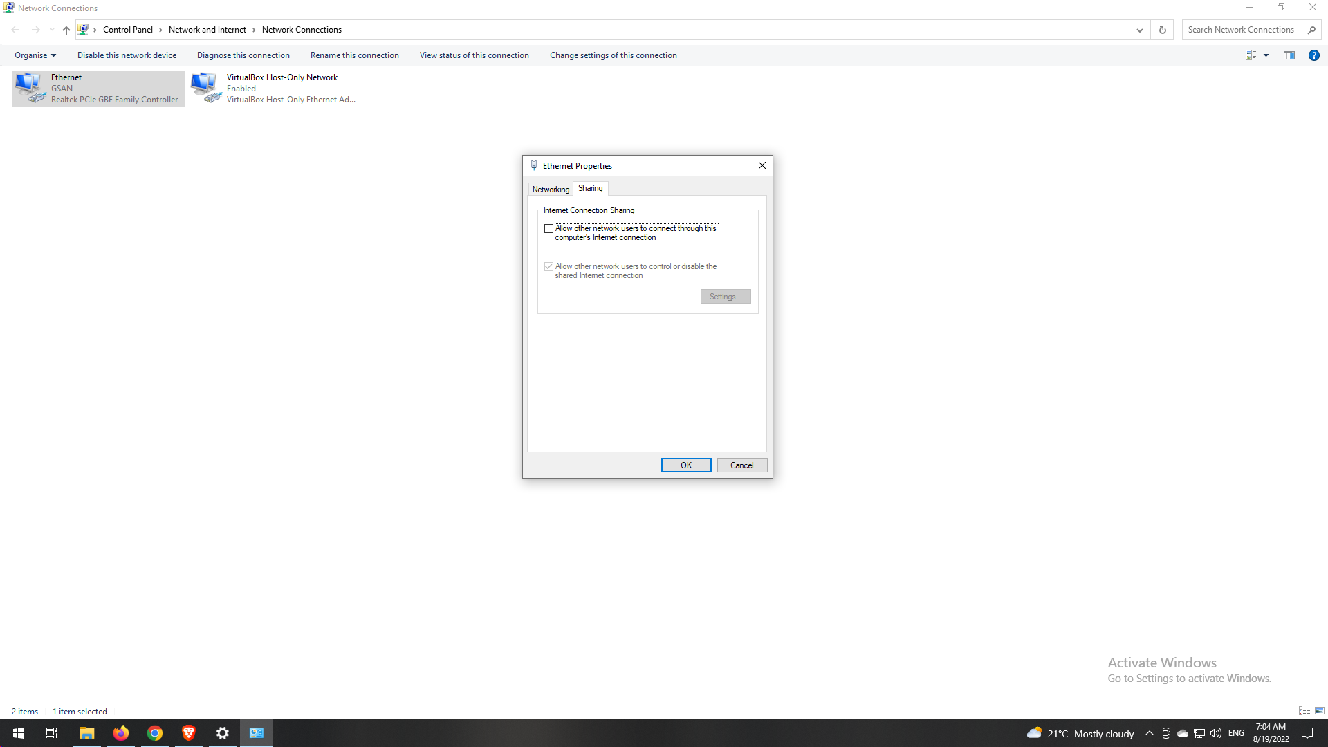 我正在尝试分享无线网络从我的个人电脑到另一台电脑与以太网电缆。我设置了共享wifi,并检查了允许其他网络。并将以太网局域网上的IP设置为静态模式(192.168.0.1),在另一台PC上设置为静态模式,在192.168.0.2和网关在192.168.0.1上设置为静态模式。但上面写着不能上网。有人能提供解决方案吗?