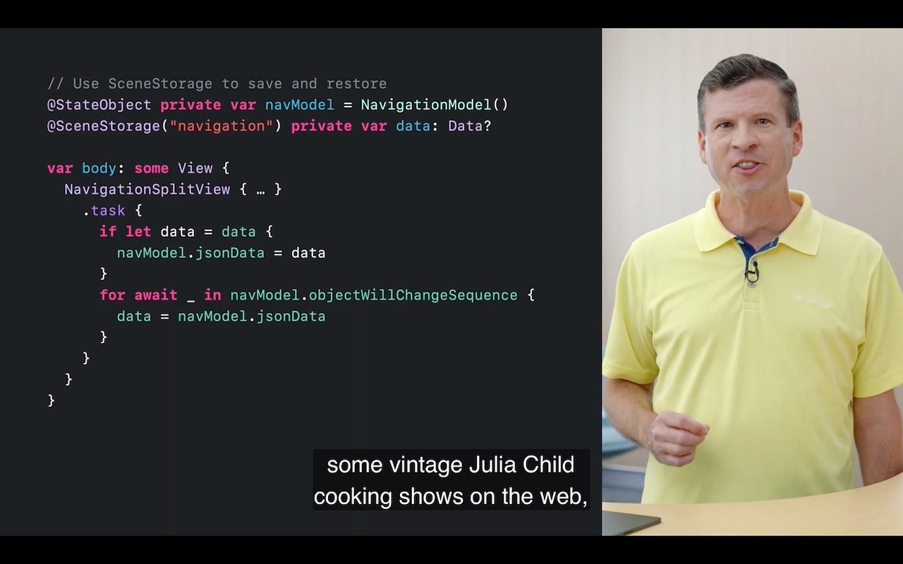 该示例来自一个名为WWDC22的SwiftUI导航食谱视频。