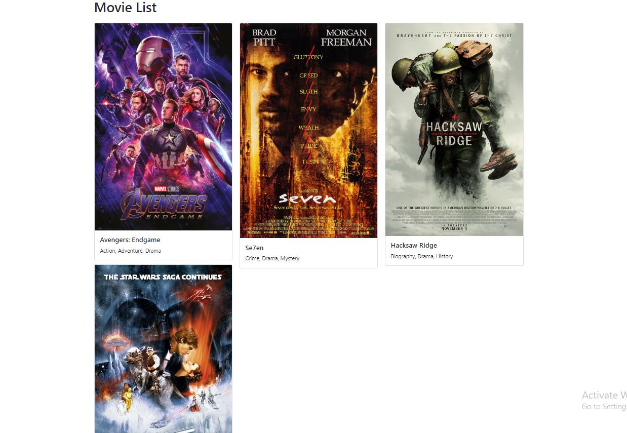 我有这个电影应用程序在Spring,我想显示5电影卡在同一排。这就是我现在拥有的: