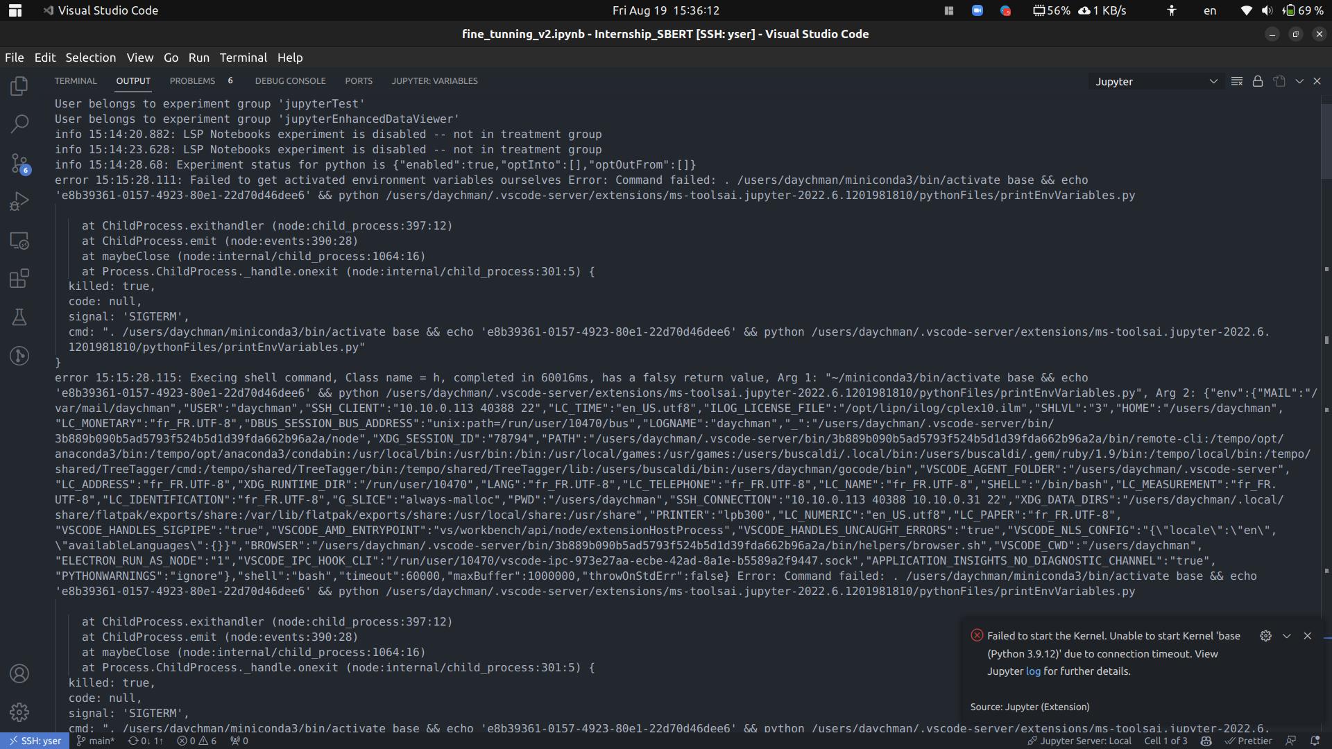 我使用VSCode与conda进行交互,安装了扩展。我重新安装这些扩展太绝望,它也没有解决问题。我不能运行木星中的任何细胞,因为激活虚拟环境是超时的。有什么东西可以让conda的激活时间和以前一样1-2秒吗?