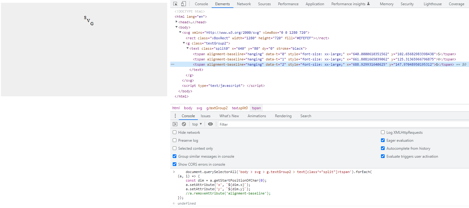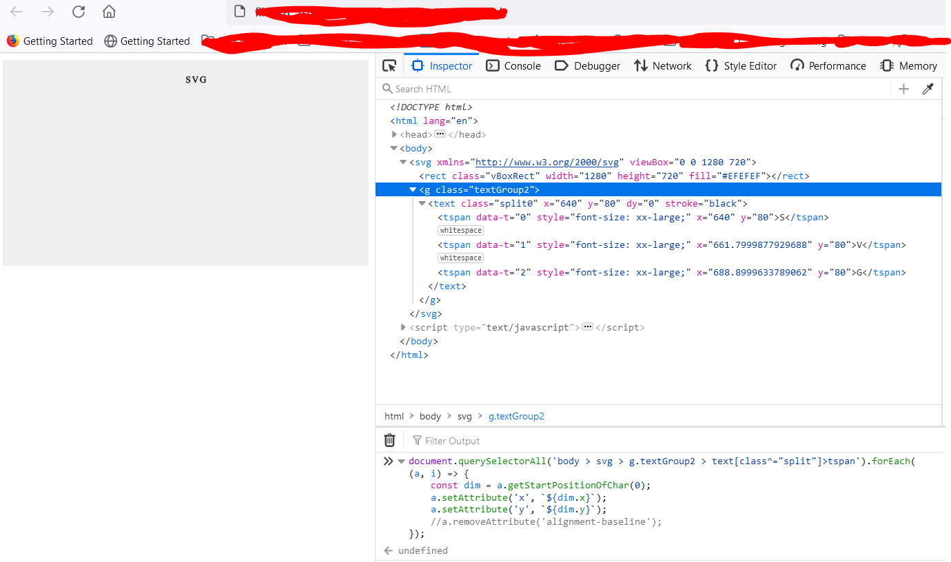 如何使Chrome/Edge返回Firefox返回的内容,即具有x和常量y属性的每个tspan?完整代码如下