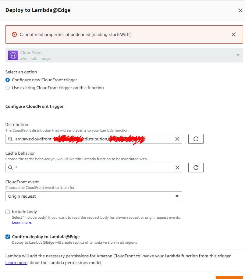 }但是,当我尝试使用建议的Node代码部署lambda@edge函数时,它会抛出错误Cannot read properties of undefined (reading 'startsWith')。