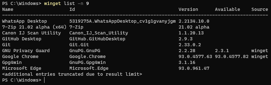 winget list命令显示当前安装在我的计算机中的应用程序列表,但它不按应用程序名称的字母顺序显示应用程序,就像在控制面板中一样,