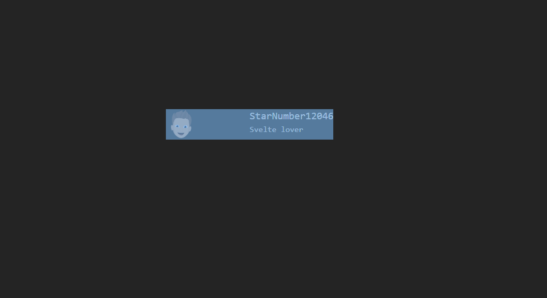 <p class="text-left font-mono"><span class="text-xl">StarNumber12046</span><br>Svelte lover</p>
