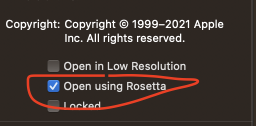 转到应用程序>右键单击Xcode > Get信息>选择Open使用Rosetta重启系统