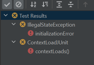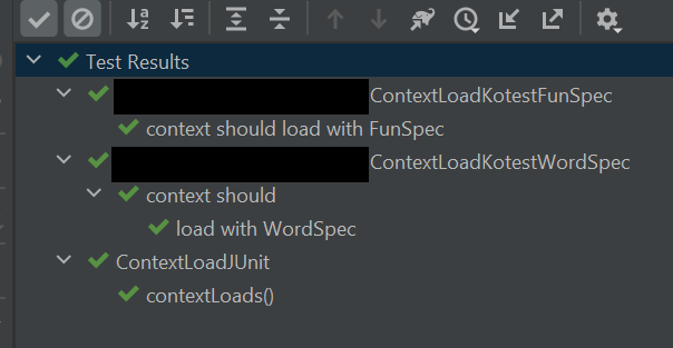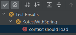 应用程序上下文的初始化发生在扩展的intercept部分的SpecExtension函数中。当应用程序上下文的初始化失败时,规范从未被执行,因此,规范的单个测试从未被初始化过。这样做的效果是IntelliJ没有显示任何失败的测试--没有失败的测试,只有失败的规范。