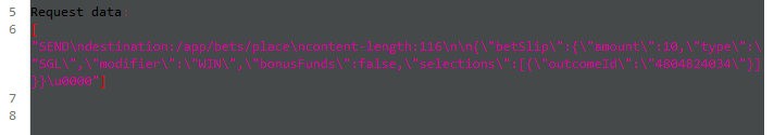 在该应用程序上,我可以确认操作正在执行(在应用程序中,这是对投注位置的请求,我可以看到投注量与我放置在j测量仪上的金额)。