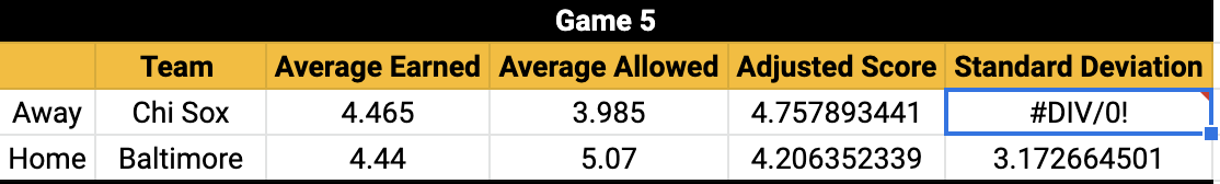=STDEV(vlookup(B19,'2021 Game Log'!A2:B,2,false))基本上现在我有了所有客场比赛的标准.我想改进这一点,并得到只有客场的球队,在游戏中列出的"B单元“的标准开发。分数列在2021年游戏日志中。(这有道理吗?)