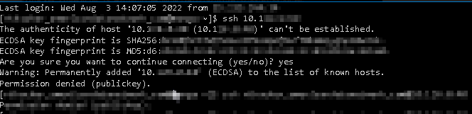 这里可以发生许多事情,但是一个很好的故障排除点是查看本地存储的SSH主机密钥。据我所见,您的所有操作系统都是Linux,因此您可以从删除known_hosts文件并再次尝试连接开始。