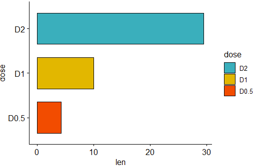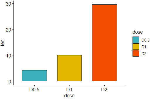 ggbarplot(df, "dose", "len",