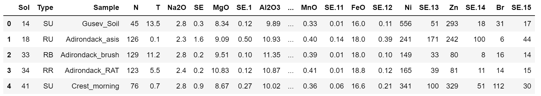 'Sample': ['Gusev_Soil','Adirondack_asis','Adirondack_brush','Adirondack_RAT','Gusev_Other'],