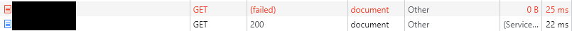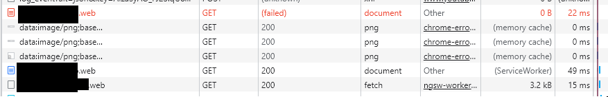Console: {"lineNumber":0,"message":"The FetchEvent for "https://..." resulted in a network error response: the promise was rejected.","message_level":2,"sourceIdentifier":1,"sourceURL":""}