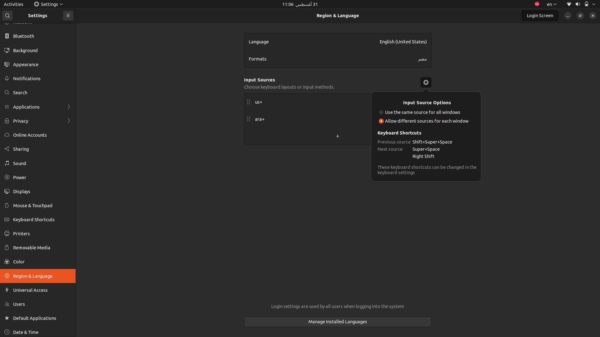 更新Ubuntu后,按钮改变了语言,我转到设置,然后改变键盘上的选项,它没有包括在列表中,解决方案是什么?