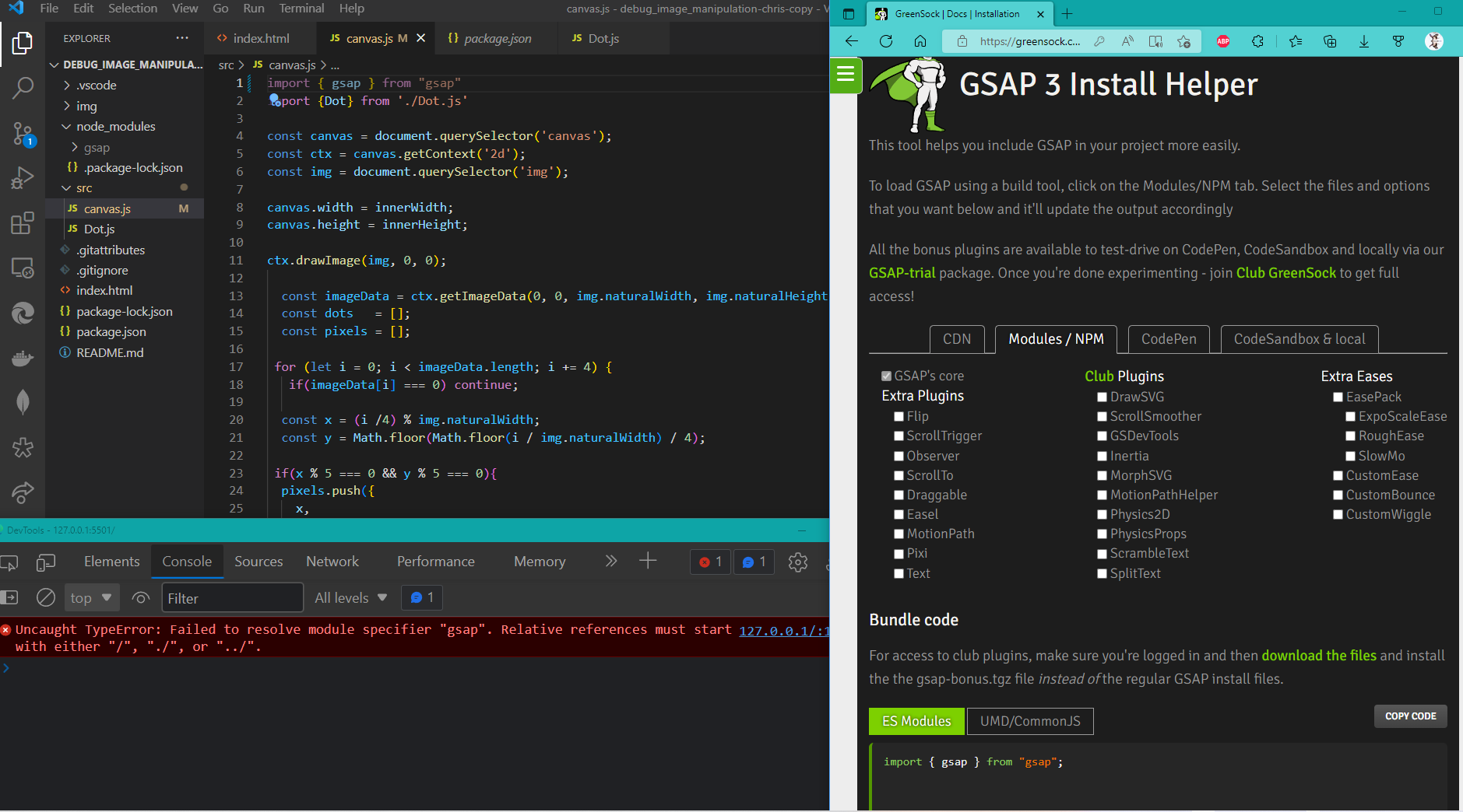 这样做只会引发控制台错误: Uncaught :未能解决模块说明符"gsap“。相对引用必须以"/“、"./”或“./”开头。