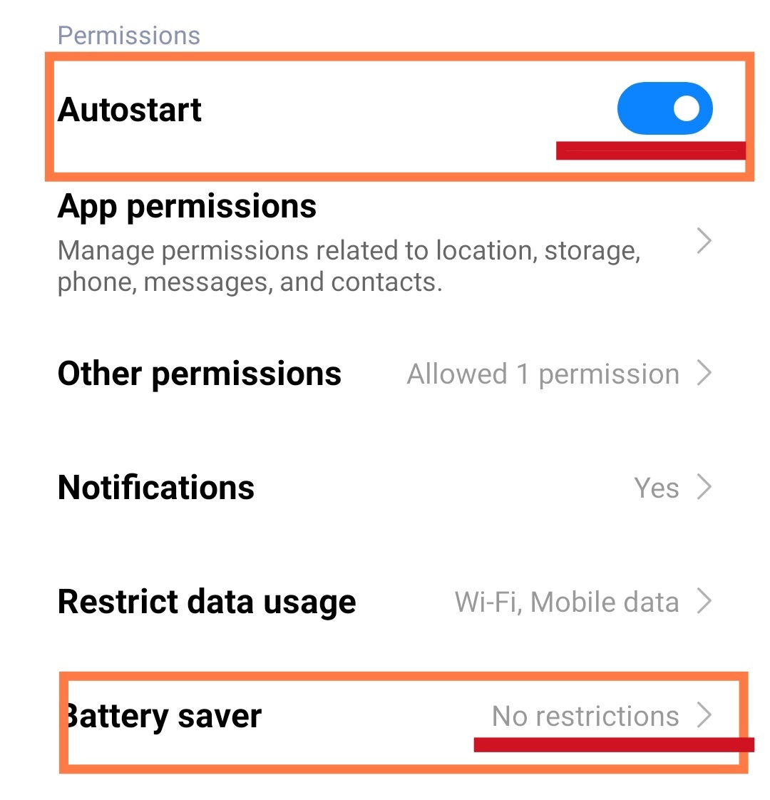 我需要检查小米应用程序设置中的框,它的工作原理在华为上出现了一个错误。