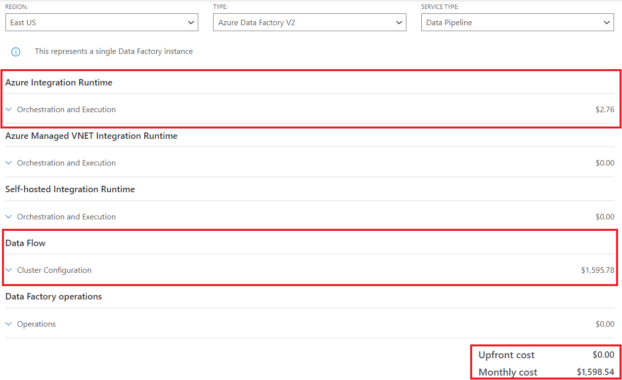 Azure Data的总体成本取决于部署到Azure Data帐户中执行任务的不同组件(或资源)。像Azure Integration Runtime和Data flow clusters这样的组件包括成本,应该只根据需求进行适当的配置。