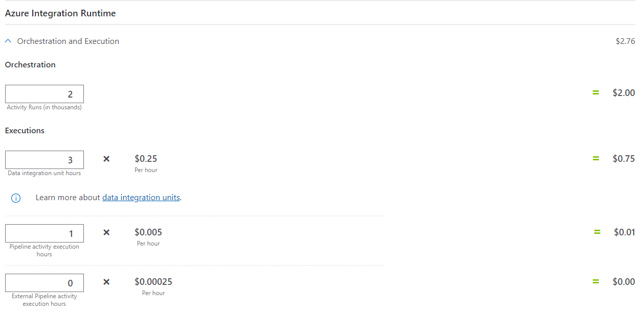 我需要估计Azure数据工厂的成本。我厌倦了使用Azure给出的例子。但我还是有疑虑。所有32个文件的数据大小约为5 gb。