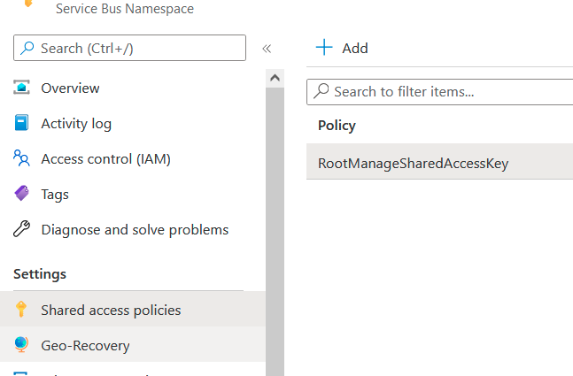 }正确地创建了Servicebus名称空间。在创建Servicebus之后,我需要检索这个资源的ConnectionString。对于自动创建的RootManageSharedAccessKey,或者为该任务创建特定的附加策略。