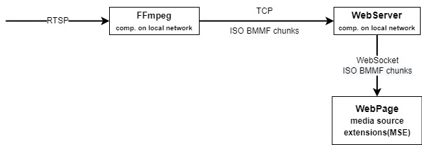 ffmpeg -i rtsp://127.0.0.1:8554 -f image2pipe tcp://127.0.0.1:7400如何分割RTSP流到ISO BMMF块发送到网页播放媒体源扩展?或其他方法,以准备RTSP流与FFmpeg在MSE中播放。也许我没有正确理解MSE是如何工作的,以及如何准备播放视频。