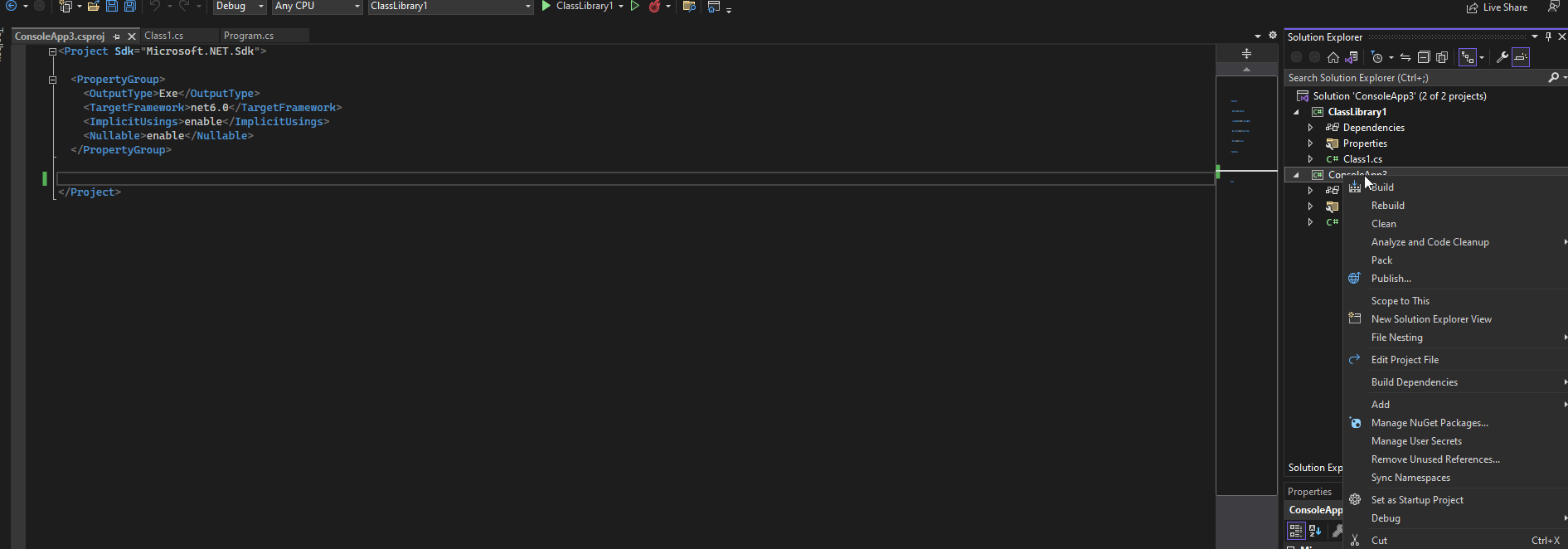 Project-3 (Class Library)当我构建/重新构建解决方案时,一切看起来都很好,这意味着我在Project-2/3中更新了一些代码,控制台应用程序(Project-1)可以得到这些更新。
