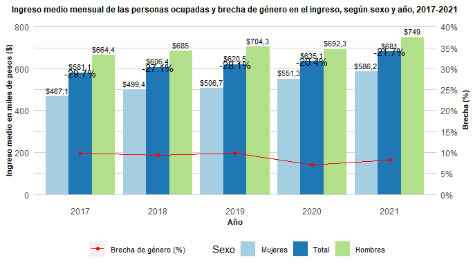 labs(title="Ingreso medio mensual de las personas ocupadas y brecha de género en el ingreso, según sexo y año, 2017-2021")这是一张图片