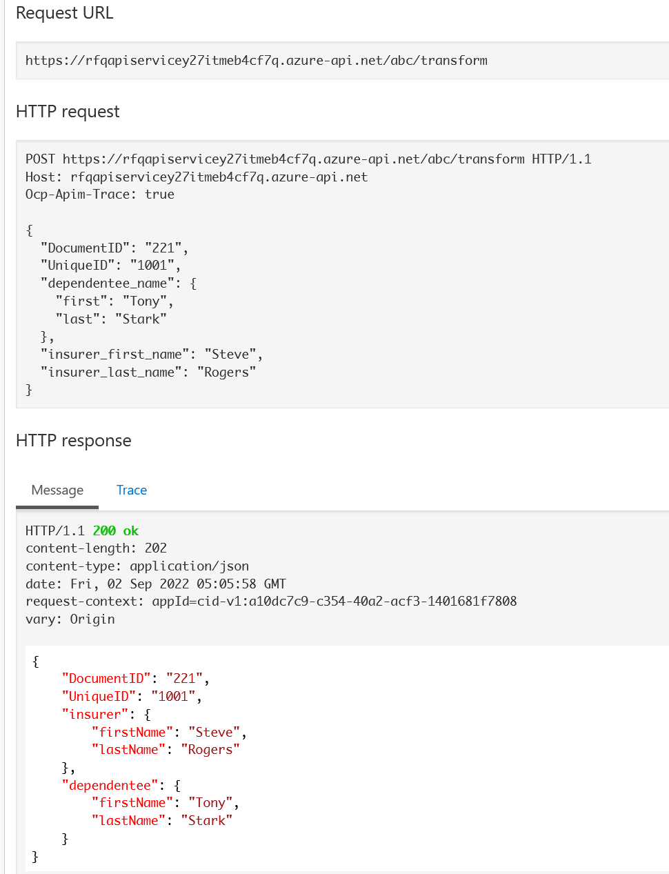 我想要APIM做的是修改(更改键名,添加新键),使有效负载看起来与API所期望的完全一样。