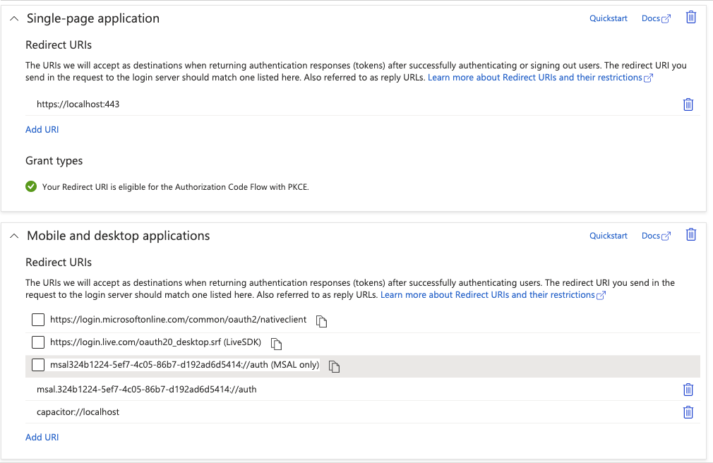 };这款应用是一款网络应用,在iOS上使用时有capacitor://localhost作为链接,所以我不知道如何在Azure AD portal.Tried上配置它,将capacitor://localhost作为redirectUri,以及我在互联网上找到的不同方法,但它们都不起作用。