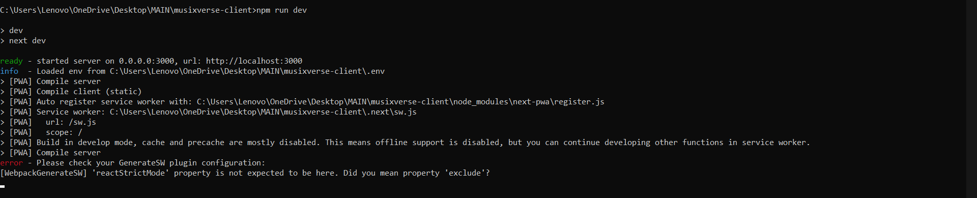 错误-请检查您的GenerateSW插件配置: WebpackGenerateSW 'reactStrictMode‘属性不会出现在这里。你是说财产“排除”吗?