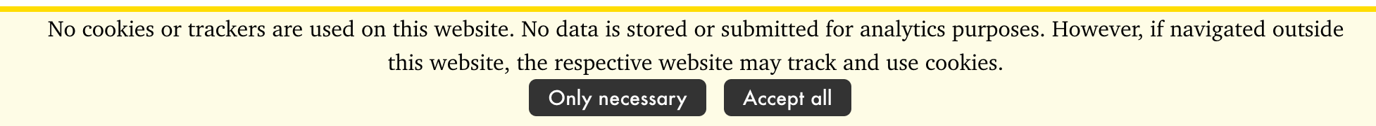 我正在开发一个使用雨果静态网站生成器和多西主题的简单网站。该网站包含一个简单的信息Cookie Banner,因此我引用了Cookie同意书Hugo法典中提到的方法将相同的信息添加到我的静态网站中。