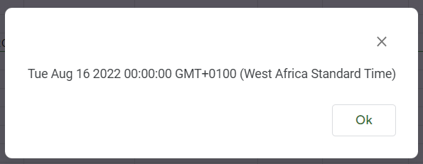 SpreadsheetApp.getUi().alert(date);我期望8/16/22的输出,但得到以下结果: