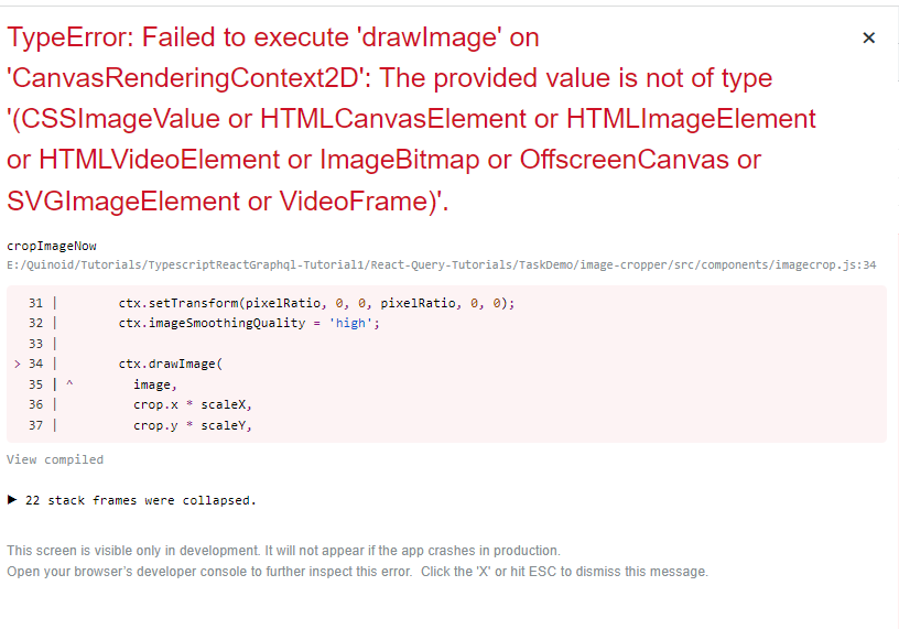 在我的项目中,使用react图像-裁剪包来裁剪图像.但这提供了一些错误
