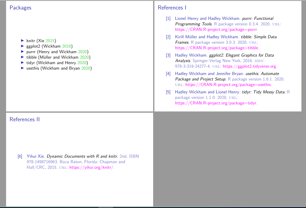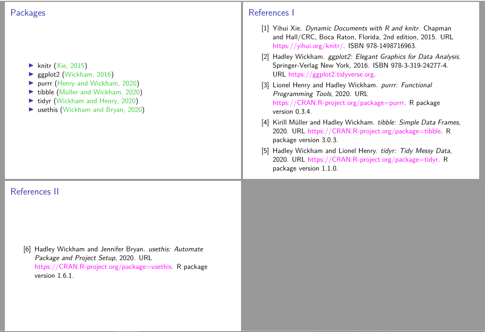 \begin{frame}{Packages}