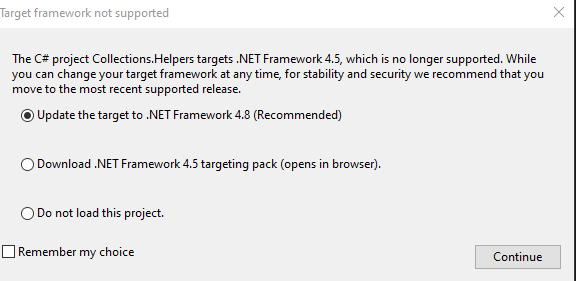 不幸的是,我想访问一个古老的项目。此项目运行在.net框架工作4.5上,不能升级。