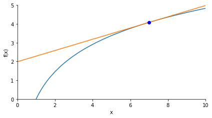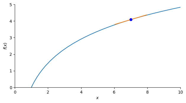 # Find derivative, plot tangent