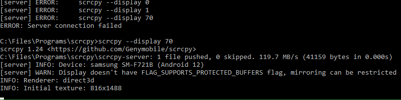 我假设这是因为显示不安全(警告:显示没有FLAG_SUPPORTS_PROTECTED_BUFFERS标志,镜像可以被限制),但普通应用程序无法创建安全的虚拟显示,因为权限仅针对系统应用程序。