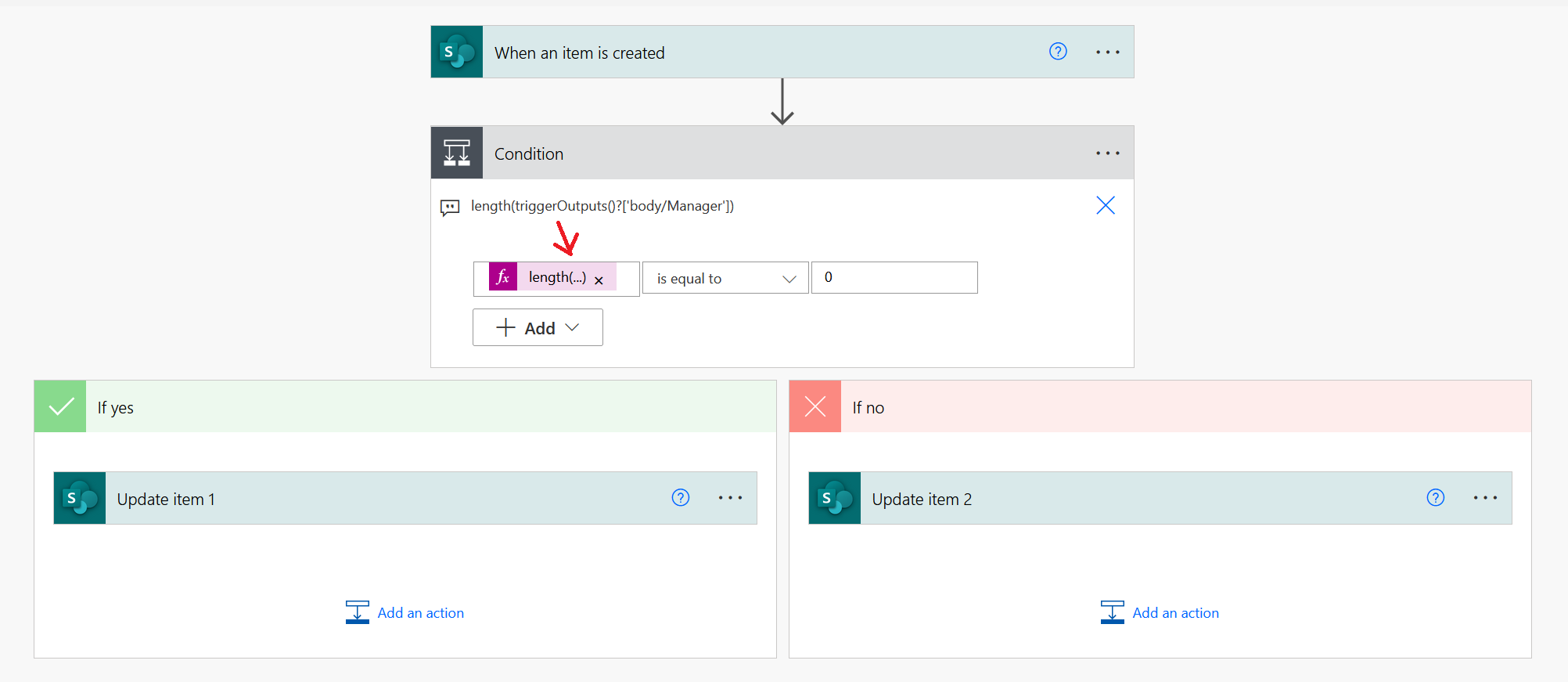 下面的截图是我的流程。但是,如果manager列为空,则不会更新该项。只有当管理器文件有值时才能工作,并且它会更新项。