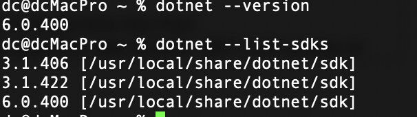 我下载了VS2022 for mac版本,默认情况下它似乎为我安装了环境的.net6版本,我自己安装了一个3.1版本。当地环境如下: