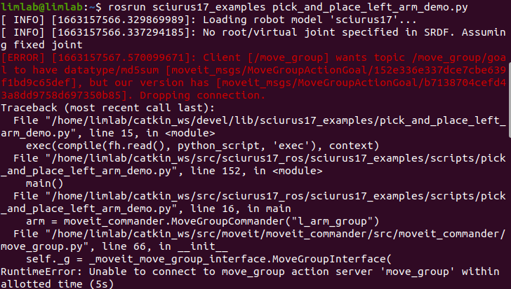 我正在使用ROS和python编写一个机器人程序。这个程序可以在ROS旋律上正常运行,但是它会引起AttributeError:模块'moveit_commander‘没有符号上的MoveGroupCommander’,请问这是ros版本的原因吗?有办法结束这一切吗?在这里输入图像描述