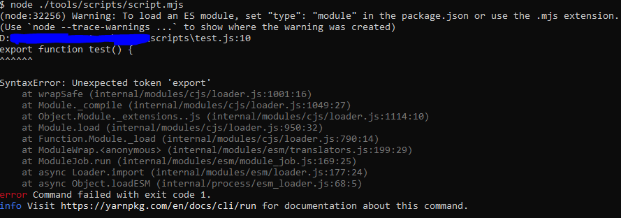 }当我试图运行script.mjs文件时,会得到以下错误: