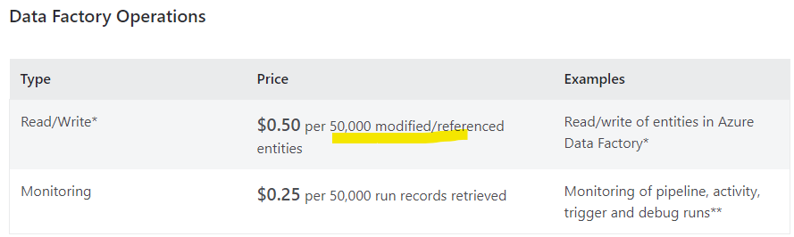 类似线程:https://learn.microsoft.com/en-us/answers/questions/1015698/cost-factors-for-azure-data-factory.html